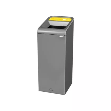 - Heavy-gauge steel recycler with a damage-resistant powder coat finish features contoured edges and magnetic connections that keep receptacles perfectly aligned to one another for a professional appearance