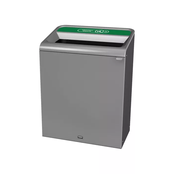 - Heavy-gauge steel recycler with a damage-resistant powder coat finish features contoured edges and magnetic connections that keep receptacles perfectly aligned to one another for a professional appearance