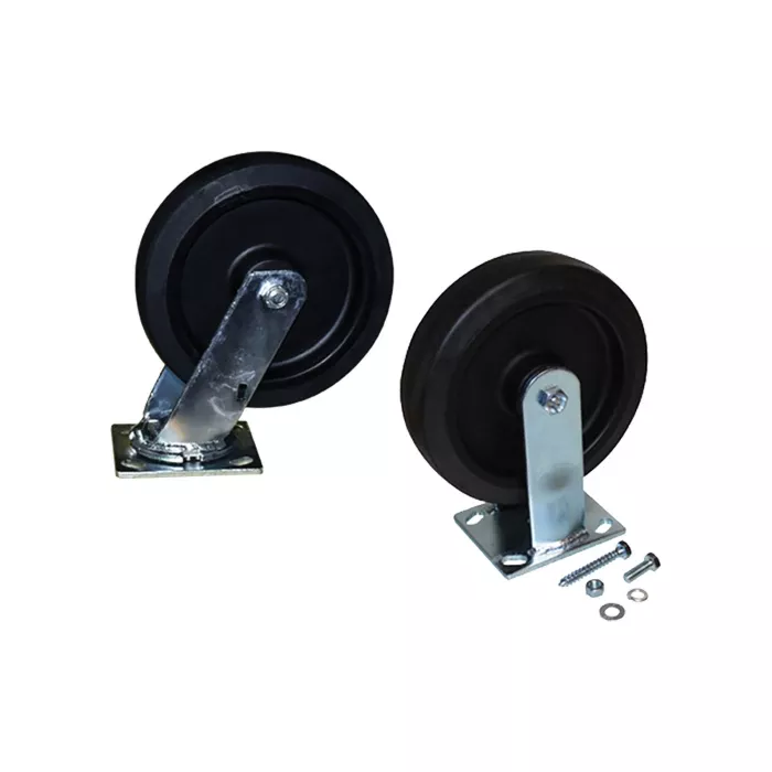 - Includes: (2) 2" x 8" swivel casters, (2) 2" x 8" rigid casters, (16) 3/8"-11 x 2.5" lag screws, (32) 0.375" washers, (16) 3/8"-16 x 1" hex head screws, (16) 3/8"-16 hex head nuts, (16) 3/8" spring lock washers, (8) 5/16"-18 x 2-1/2" hex head bolts, (8) 5/16"-18 hex nuts, (8) 5/16" SS washers, (8) 5/16" helical spring lock washers