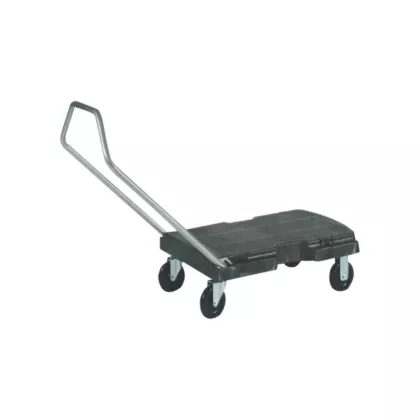 - Three position handle lets users push, pull or fold flat for space efficient storage