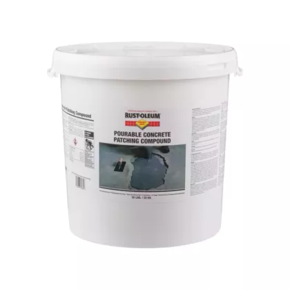 - Has a fibre-reinforced, easy to mix, pourable material for quick repairs to level concrete surfaces