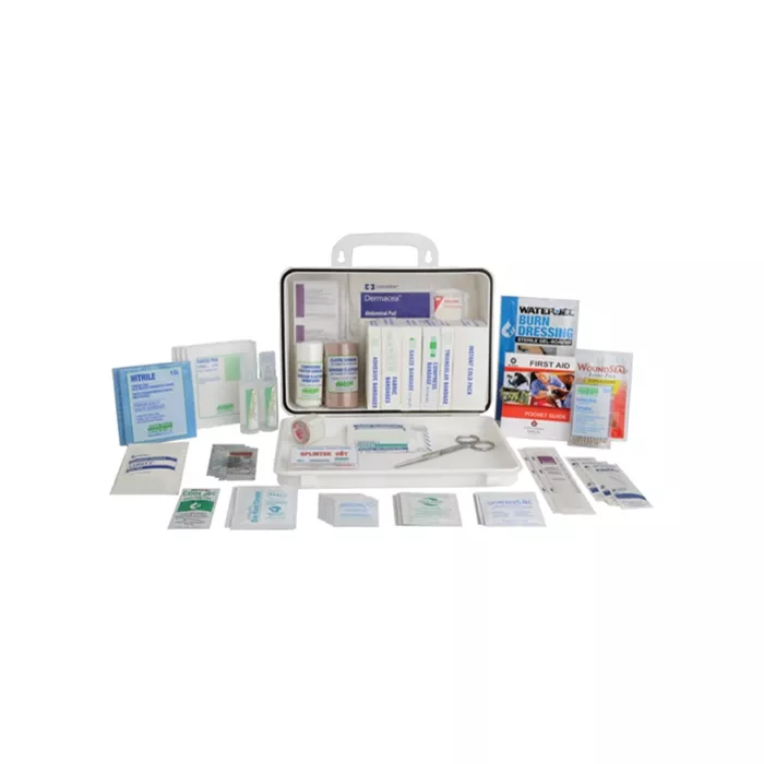 - Includes waterless handcleaner, instant cold pack, eye wash, first aid ointment, burn care, antiseptic, instruments, first aid and emergency care guide and an assortment of bandages and dressings