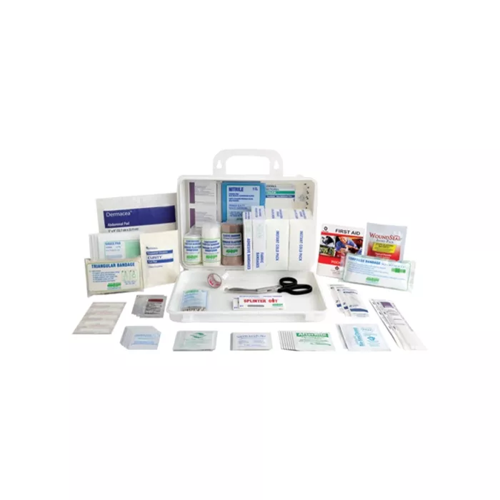 - Contains a full assortment of practical, single-use, disposable products to treat injuries in a sanitary way