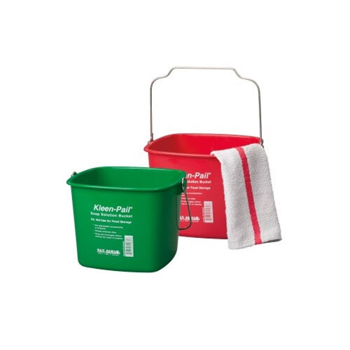 Kleen–Pails® meet HACCP dedicated use guidelines for cleaning and sanitizing clothes used to wipe down surface areas. Kleen–Pails® make it easy to separate containers used for food storage from those used for dangerous non–food purposes. They also eliminate any potential confusion between cleaning and sanitizing solution containers – Green Kleen–Pails® are used for cleaning solutions and Red Kleen–Pails® are used for sanitizing solutions.