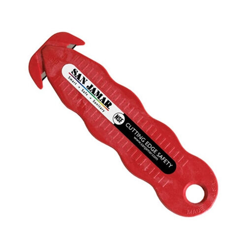 Klever Kutter™ is the first disposable safety cutter that prevents costly cut injuries to employees and damage to products. Its patented design features a recessed blade that virtually eliminates injuries. It also prevents damage to the contents of cartons by allowing only a minimal portion of the blade to penetrate the carton surface. The Klever Kutter™ design features a dual stainless steel blade which lasts twice as long as typical single blade cutters. Eliminate the need to change blades, Klever Kutter's™ distinct ergonomic contour fits perfectly in any hand. Simple design allows for easy storage and maximum accessibility while the high visibility color makes it easy to find in cluttered work environments. NSF Listed and dishwasher safe.