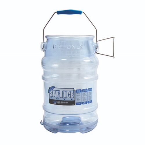 Protect ice from dangerous contamination during transport with Safe-T-Ice® Tote from San Jamar. This dedicated ice tote features an integrated comfort handle with raised Tri-grips™ to prevent hand contamination and for easy and safe pouring at any level. Patented HACCP Hanger™ attaches to ice machines for faster and more efficient filling of ice totes. Use the Original Safe-T-Ice® Tote for high-capacity carrying (25 lbs. when filled) and manual cleaning.