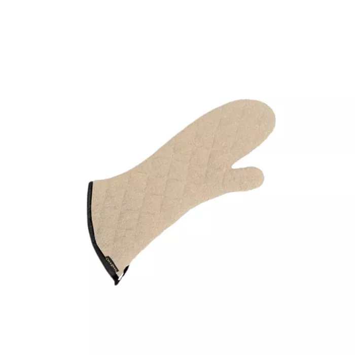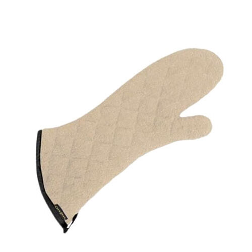 Made of heavy-duty institutional grade terry cloth. This excellent oven mitt can handle temperatures up to 500°F for short periods of time.