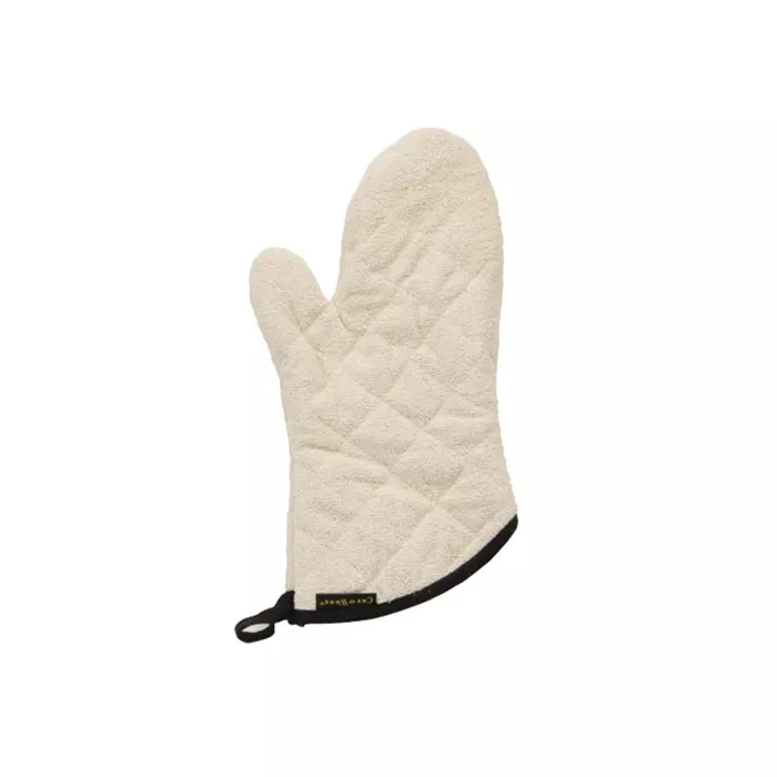 Made of heavy-duty institutional grade terry cloth. This excellent oven mitt can handle temperatures up to 500°F for short periods of time. Machine washable. Sold in pairs.