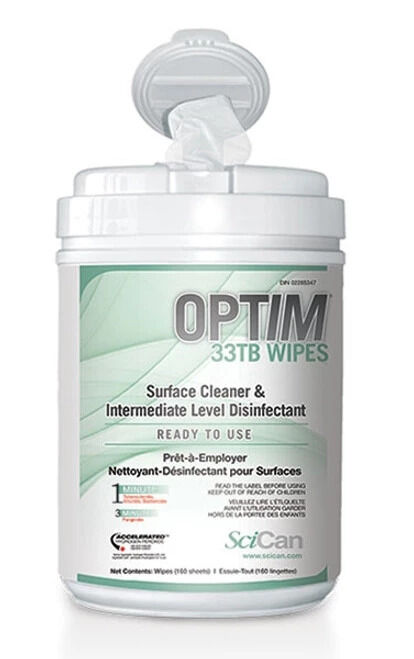 SciCan Optim 33TB Surface Disinfectant Wipes are high-performance, unscented wipes designed to effectively clean and disinfect hard, non-porous surfaces. Measuring 6" x 7", these wipes are pre-saturated with a powerful yet gentle disinfectant solution, ensuring comprehensive disinfection without the use of harsh chemicals. Optim 33TB wipes are ideal for use in healthcare and other professional environments, providing a convenient and efficient solution for maintaining a hygienic environment.