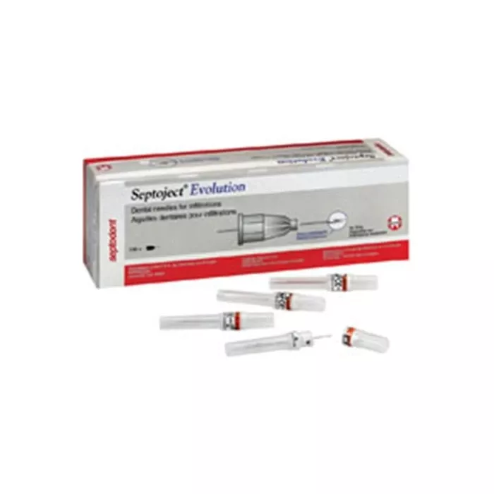 The Septoject Evolution Dental Needle 27G Short 25mm is specifically designed to provide superior performance and patient comfort during dental procedures. Manufactured by Septodont, a trusted name in dental supplies, this needle features a unique bevel design for smoother insertion and reduced tissue damage. The 27-gauge, short needle with a 25-mm length is ideal for a variety of dental applications, ensuring precision and reliability for dental professionals. Each box contains 100 needles, offering both quality and value for dental clinics.