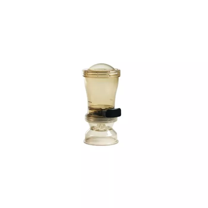Salt and seasoning dispenser. 10 oz granular seasoning capacity. Wide cone spread pattern. Indicator lines. High temperature resistant polysulfone. NSF compliant.