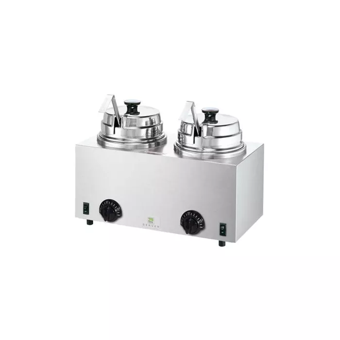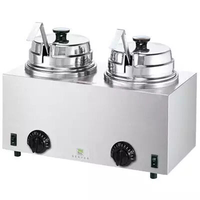 Versatile twin warmer provides accurate, even heat for dessert toppings, dipping sauces, gravy and more from a 2.8 L jar.