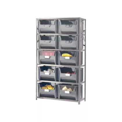 - Includes: (10) Stacking bins