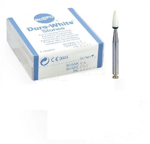 Dura-White Stones are ideal for fine contouring and finishing of enamel, composites, compomers and porcelains. - Micrograined aluminum oxide grit - Vibration-free performance - Long lasting - Use Dura-White Stones for: fine finishing on enamel, composites, glass ionomer restoratives and porcelains Shofu Dura-White Stone Chart