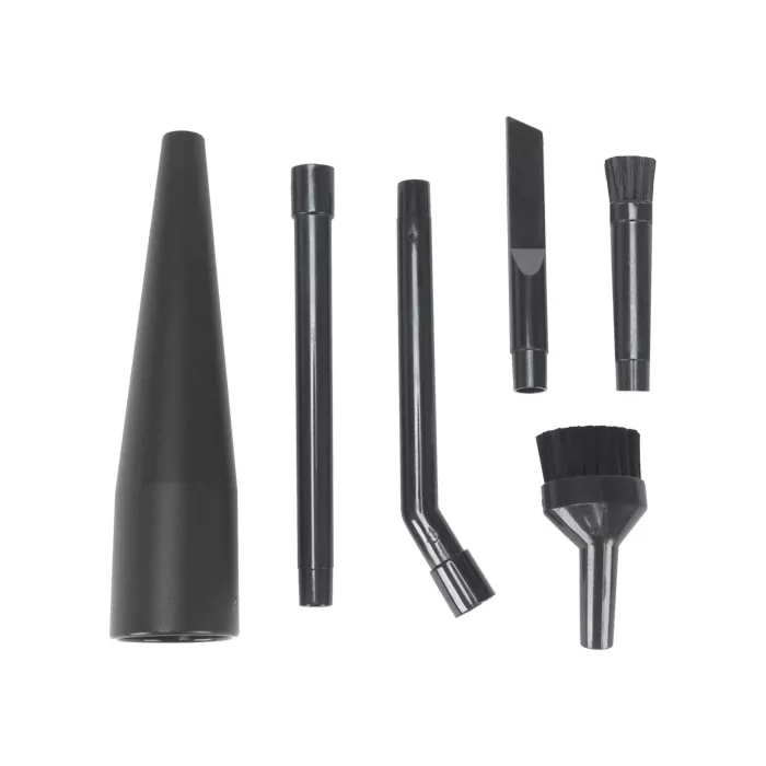 - Includes: Reduction nozzle, Straight round brush, Oval round brush, Straight wand, Curved wand, Crevice tool