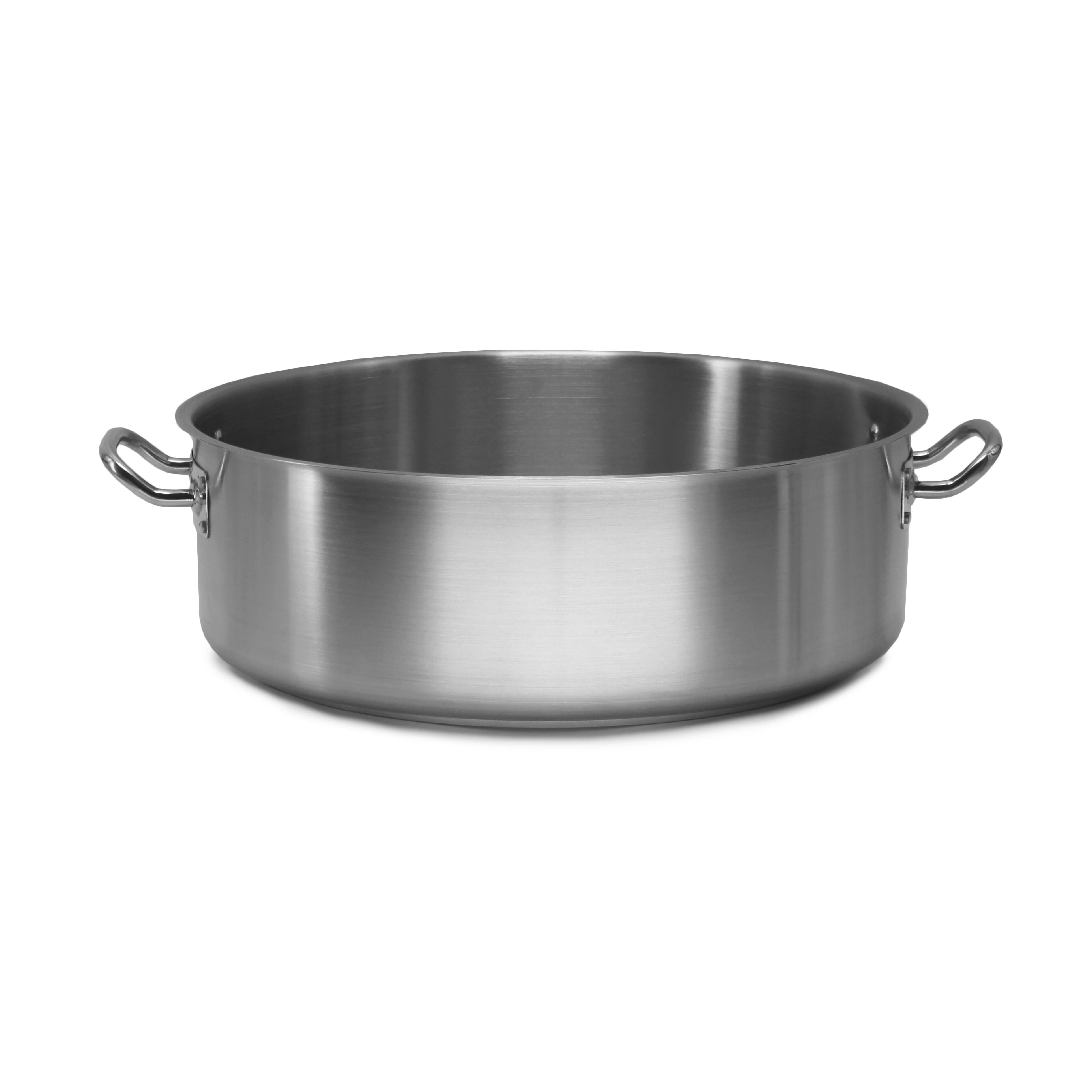 Professional 3 ply stainless steel cookware with an aluminum core for excellent heat conductivity. Designed with a heavy duty forged handle and durable stainless steel rivets to withstand the toughest kitchens.