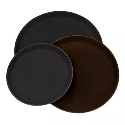 The surface of the tray (top and sidewall) is coated in a rubber-like material that keeps glass and dinnerware from slipping. The tray itself is made of plastic. Withstanding temperatures up to 150ºF /65.55º C ; hand-washing is recommended. Our most economical non skid serving tray.