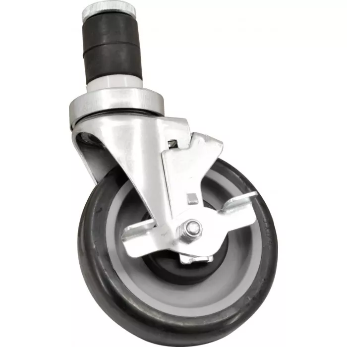 Polyurethane wheel. Iron made frame and bracket. Also fits Omcan equipment stands.
