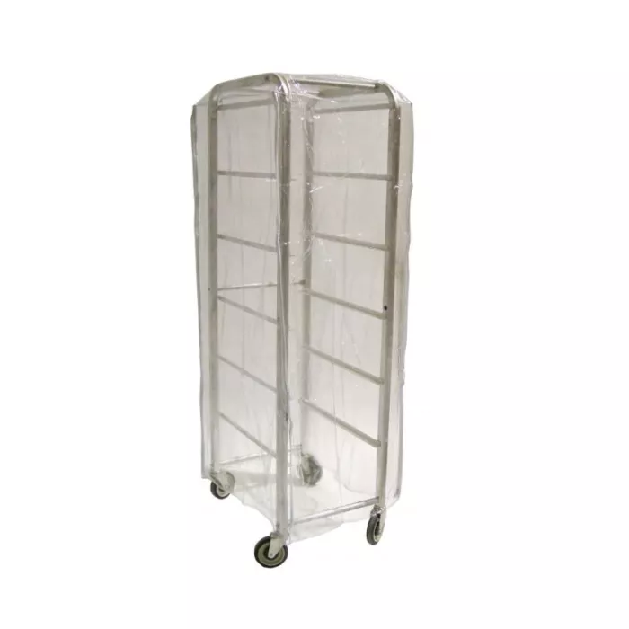 Nylon Rack Cover, Clear. 28” x 24” x 62”. Position over pan racks to protect food from damage and keep it fresh!