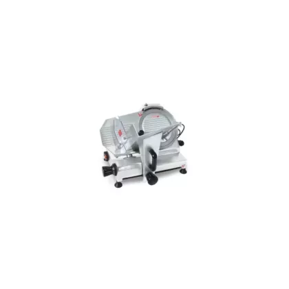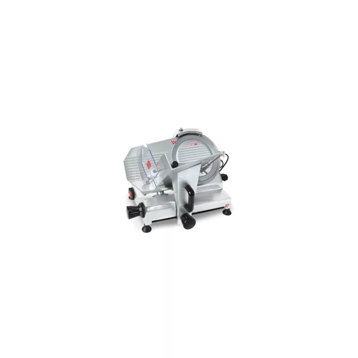 This slicer have anodized aluminum alloy bodies. The high carbon steel blades are hard chromed, with a hollow ground taper for extended sharpening and blade life. This economy belt driven machines offer exceptional cutting consistency and durability. The carriage moves smoothly on ball bearings allowing effortless cutting of deli meats and vegetables. Easy to disassemble for quick cleaning. Perfect for low volume operations. Made in China.