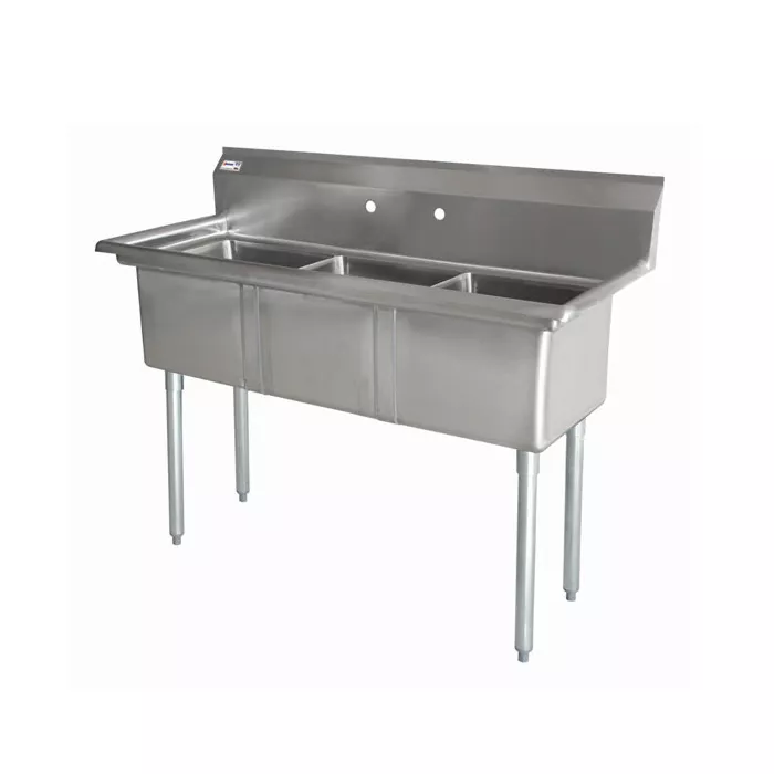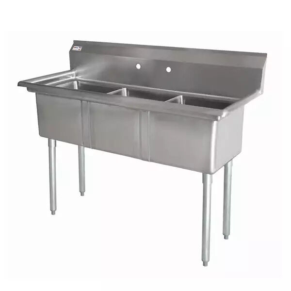 Upgrade your commercial kitchen with the Slice Craft 3 Compartment Stainless Steel Commercial Sink! - a versatile and durable solution that allows you to handle all three essential steps - washing, rinsing, and sanitizing - within the same unit!