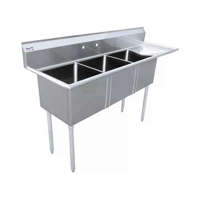 Upgrade your commercial kitchen with the Slice Craft 3 Compartment Stainless Steel Commercial Sink that comes with a right drainboard that spans 18 inches! - a versatile and durable solution that allows you to handle all three essential steps - washing, rinsing, and sanitizing - within the same unit!