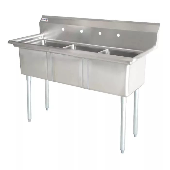 Upgrade your commercial kitchen with the Slice Craft 3 Compartment Stainless Steel Commercial Sink! - a versatile and durable solution that allows you to handle all three essential steps - washing, rinsing, and sanitizing - within the same unit!