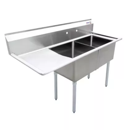 Slice Craft’s Two 18" x 18" x 11" compartment sink comes with a left drainboard that spans 18 inches!-the perfect addition to boost our food service kitchen or washroom.