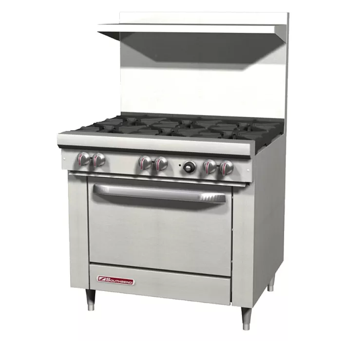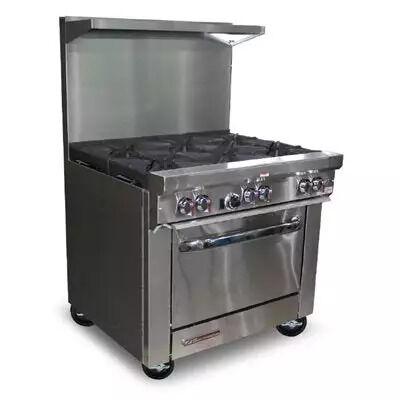 - Six (6) removable, cast iron grate tops (rear holds up to 14” stock pot)