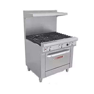 Four (4) removable, cast iron grate tops (rear holds up to 14” stock pot)