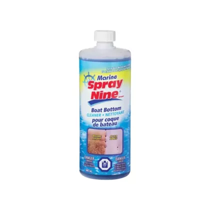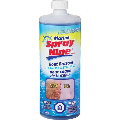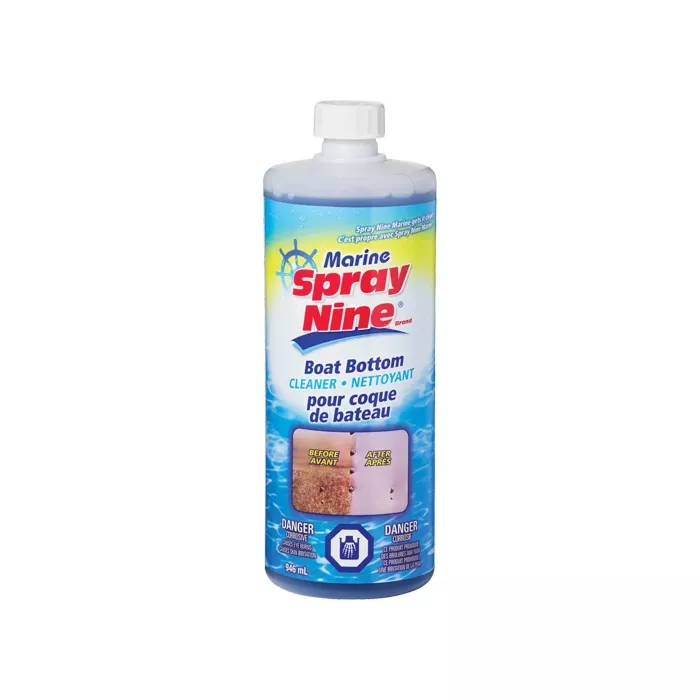 - Spray Nine® Boat Bottom Cleaner's unique gel formula clings to and penetrates the toughest boat fouling, oil slick, algae and rust stains