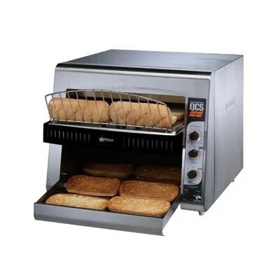 Star delivers high quality, reliable toasters. QCS3 conveyor toasters maximize productivity and power. Star’s forced convection system keeps the toaster cool- to-the-touch and extends the life of critical components. The forced convection increases productivity by circulating pre-heated air into toasting chamber. Heavy-duty motor, drive chain and conveyor speed control for superior reliability. Toast bread, bagels, English muffins and more!