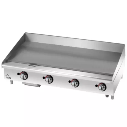 Star-Max®manual gas griddles are a perfect match for the budget minded operator. For breakfast, lunch or dinner, the Star-Max manual control griddles out-perform the competition. Star-Max® griddles feature 1” thick polished steel griddle plate. 28,300 BTU aluminized burner every 12” of width controlled by a modulating thermostatic, 3/4” N.P.T. male gas connection with convertible pressure regulator, and 4” adjustable legs. Griddles operate on Natural gas.