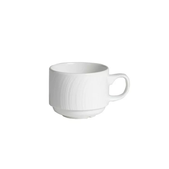Distinction Spyro Collection is a truly spectacular range that combines contemporary forms and traditional finishing. Each piece is individually styled with a delicate swirling embossment that catches the light to create a captivating optical effect of highlights and shadows. Spyro is perfectly at home in any environment, from banqueting to fine dining. Lifetime edge chip warranty for maximum confidence.