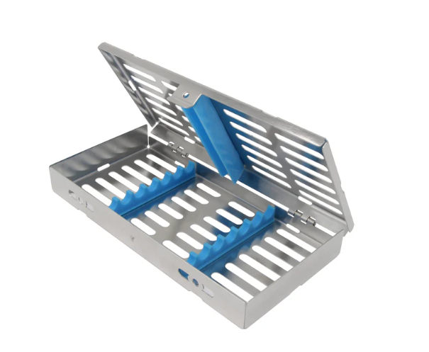 Sterilization cassettes are simply metallic boxes that contain customized slots for the placement of various dental instruments. These slots are prepared while keeping in view the size, length, thickness, and type of working ends of different dental instruments