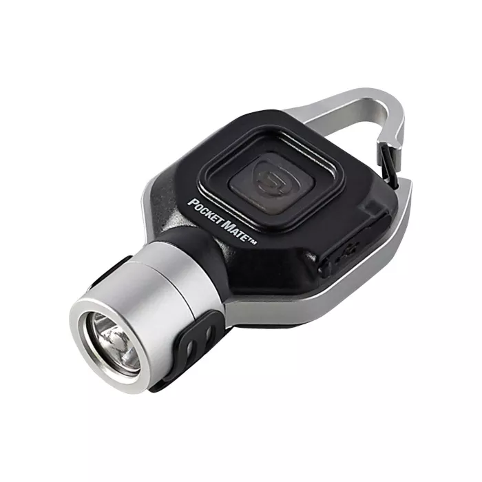 - Spring-loaded clip with carabiner shape hangs cleanly on key rings, zippers, lanyards, etc.