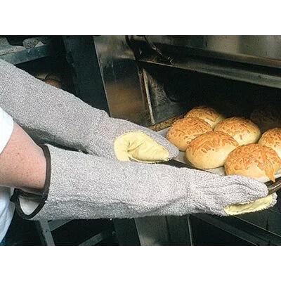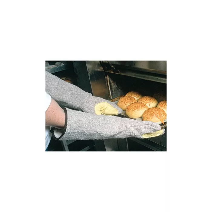 Preshrunk washable 32-oz. heavy-duty terry cloth fully lined with 11-oz. knit cotton. Reinforced Kevlar thumb patch Inside seams are pre-serged for improved seam strength and washability.