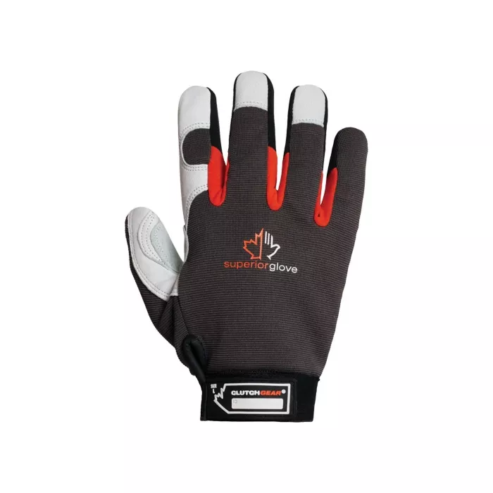 - Gloves feature a goatskin leather palm with split leather patches and thumb crotch for durability and excellent abrasion resistance