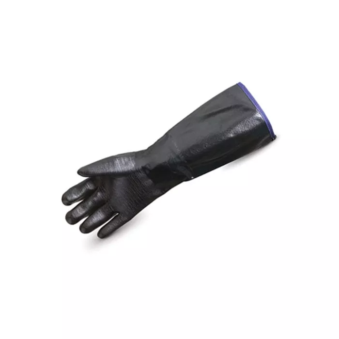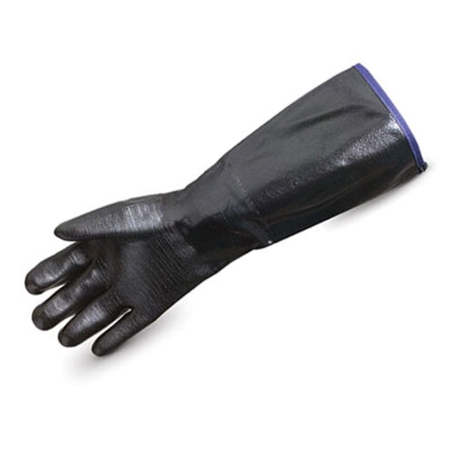 Chemically resistant neoprene fryer gloves. Resists a broad range of oils and chemicals that attack natural rubber gloves. Excellent protection from acids, caustics, oils, greases, and many solvents. Cotton shell absorbs perspiration and cushions hands. This liquid, vapor and heat resistant thermal lined neoprene glove is suitable for many jobs as it protects against intermittent contact with hot objects up to 400ºF. Makes working with steamers, deep fryers and rotisseries a lot safer.Also withstands detergents and cleaning solutions.The extra long 18" length gives you added protection.
