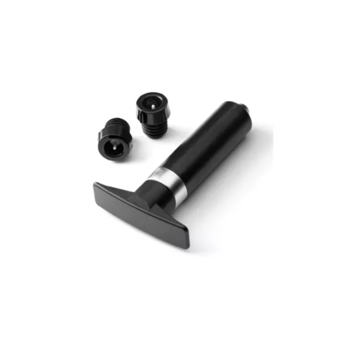 The Swissmar Epivac Wine Saver Set is designed to seal in the freshness of your wine, with reusable stoppers. To preserve your wine, securely place the wine stopper in the bottle, and pump several times until firm resistance is felt, indicating a proper seal. This product aids in maintaining the quality of wine for extended periods.