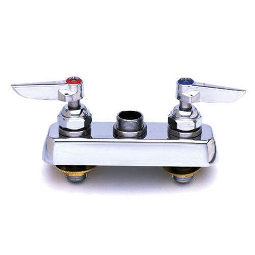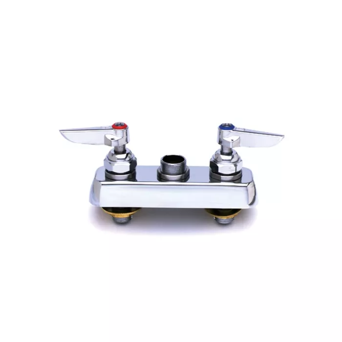 Deck mounted. Bronze body. Removable seats. 6-1/2" (165mm) long x 2" (51mm) wide chrome plated escutcheon. 4" (102mm) centers. 1-1/2" (38mm) long shanks. 1/2" IPS thread.