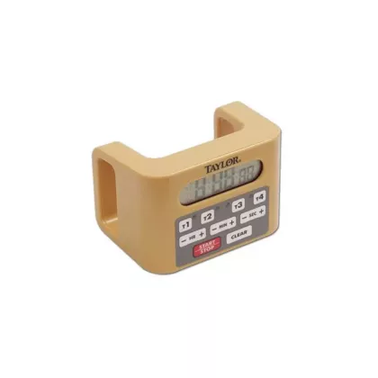 4.5" x 6.25" x 4" timer with LCD display. (4) 9 hr 59 min 59 sec timers. Simultaneous operation. 100 decibel alarms. Distinctive rings for each timer. Adjustable volume control. Free-standing or wall mounted.