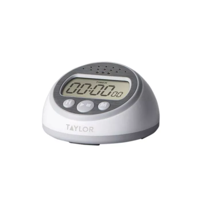 This Super-Loud Digital Timer features an alarm that is the loudest on the consumer market -- 95db! The alarm will continuously ring until the user turns it off ensuring nothing is forgotten. The timer counts down from 23 hours, 59 minutes, and also counts up like a stopwatch. Recalls the last timing event. Stainless steel accents with a glossy white housing in a classic design. The 0.6 LCD readout is clear.