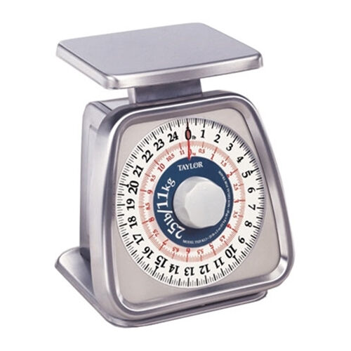 Exclusive, removable stainless steel platform design improves cleaning efficiency. Stainless steel spring and corrosion-resistant weighing mechanism for durability, long-term accuracy, and strength. Angled dial with bold graphics improves reading accuracy and ease of use. Shatterproof lens protects dial. Rotating dial allows for container weight deduction and quick zero for multiple ingredient measuring. 25 lb x 2 oz / 11 kg x 50 g capacity. NSF listed.