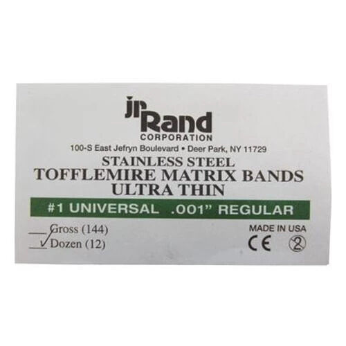 Matrix Bands: High-quality bands used for dental restorations, including the Ultra Regular #1 Matrix Bands.
