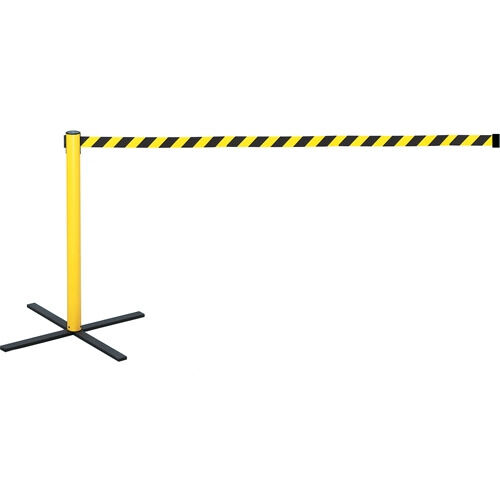 - Safety yellow UPVC tube and black powder coated legs with yellow and black safety striped belt