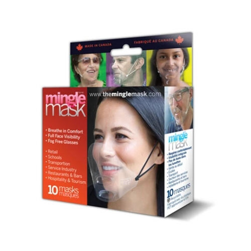 Mingle Mask is an invisible, ergonomic mask that shows your face yet still provides the benefits of mask protection. You can breathe easy - because it doesn’t fog up. One size fits everyone. It fits comfortably around your ears and has a built-in chin rest.