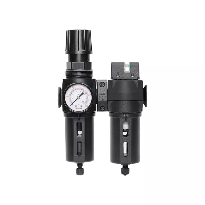 - Coalesing filter with differential pressure gauge to indicate when coalescing filter element needs changing