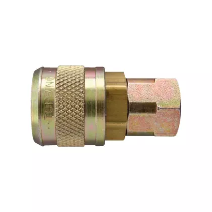 - High performance, corrosion resistant quick couplers built to interchange with industrial type couplings. Offer a higher flow for maximum on-line performance of hand-held air tools. Heavy-duty, high quality design. ; Max. Working Pressure: 250 PSI ; Air Flow: 37 SCFM ; Working Temp.: -40°F to 250°F (Manual), -40°F to 160°F (Auto)