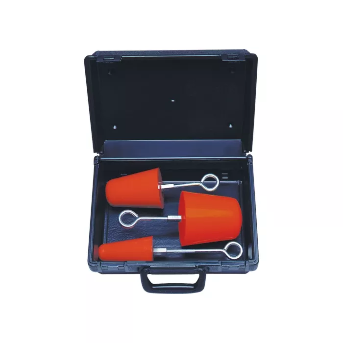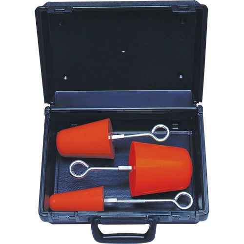 - Includes: 3 plugs (2", 3", 4") and a rigid plastic box